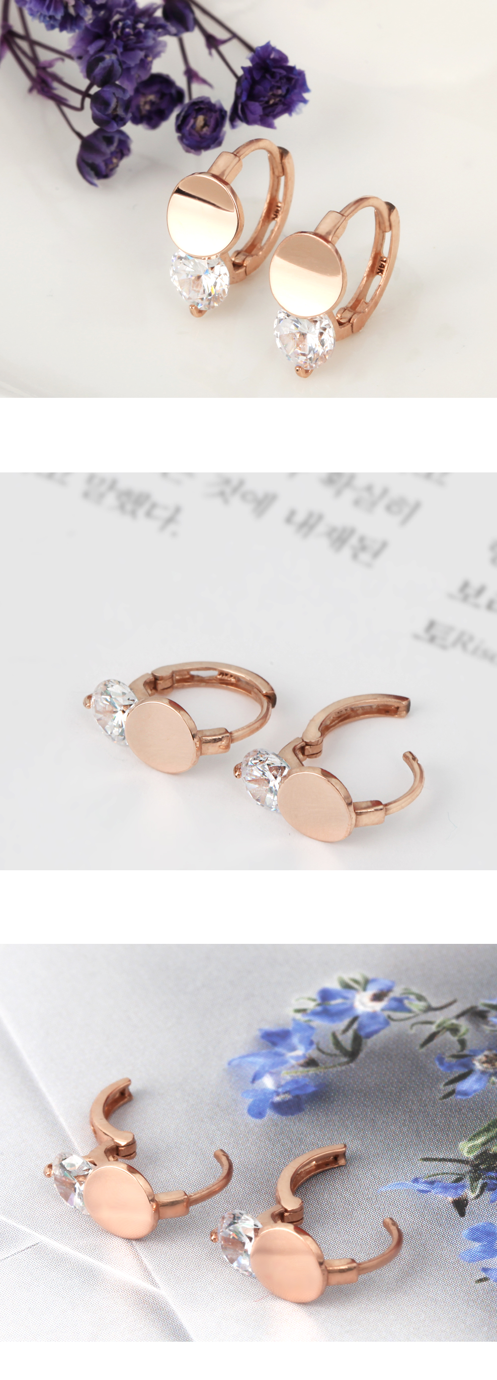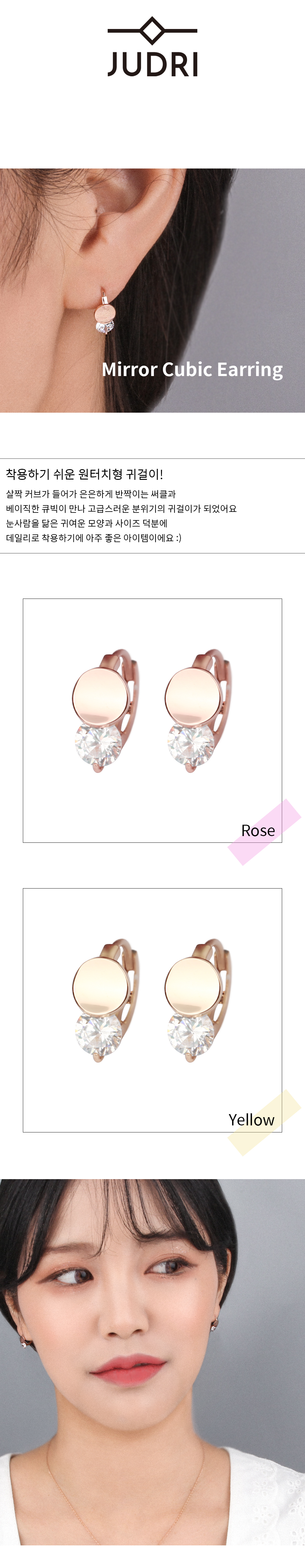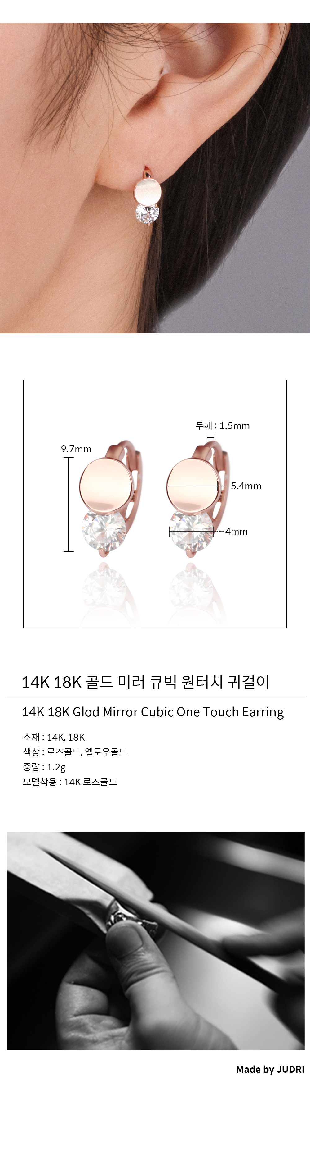 14K 18K 골드 미러 큐빅 원터치 귀걸이