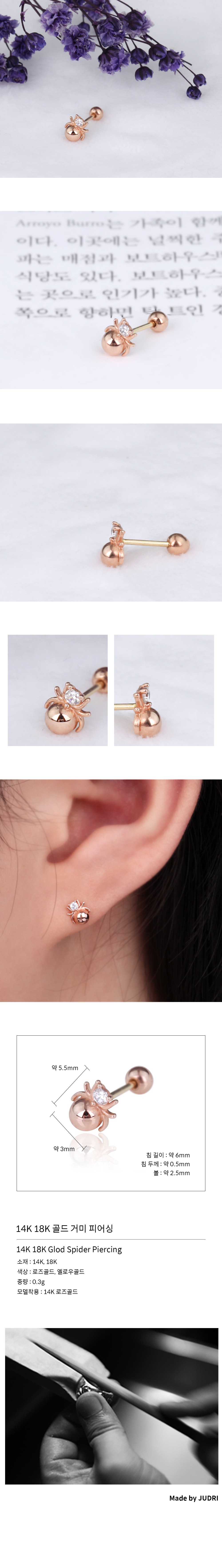 14K 18K 골드 거미 피어싱