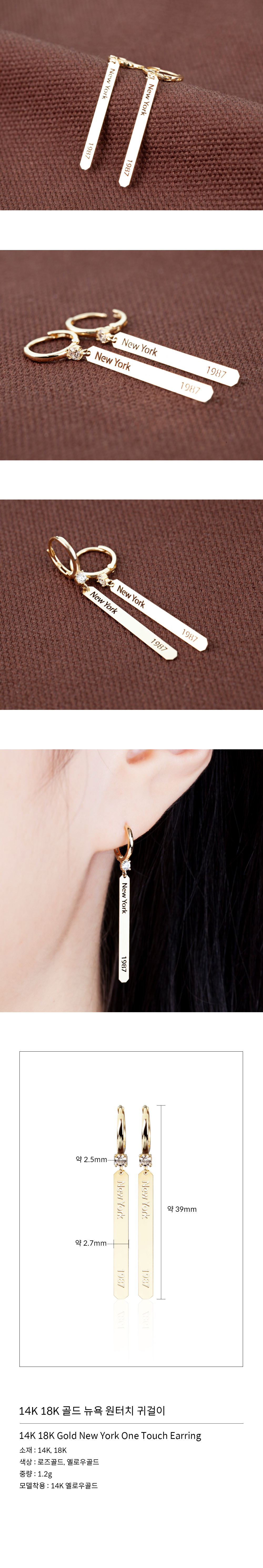 14K 18K 골드 뉴욕 원터치 귀걸이