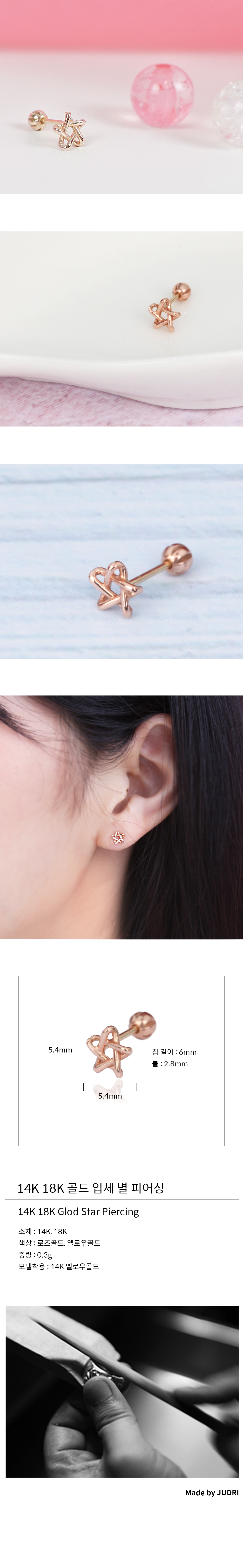 home > 피어싱 > 14K 18K 골드 입체 별 피어싱