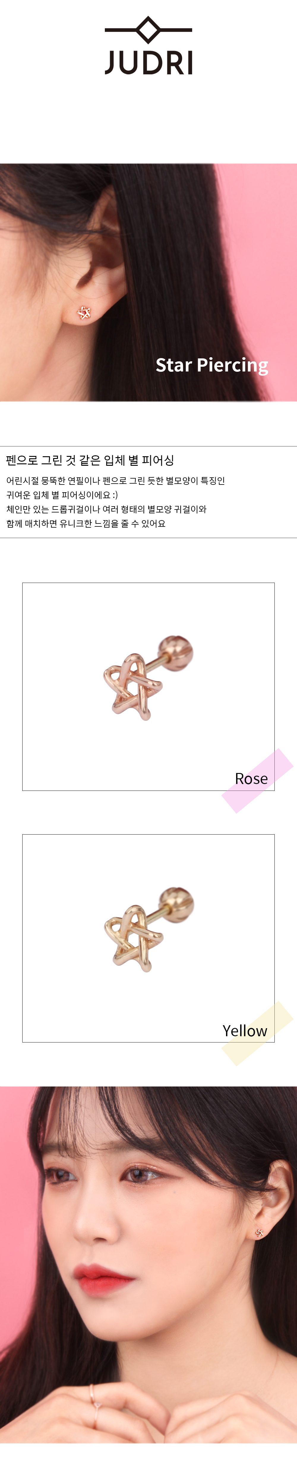 14K 18K 골드 입체 별 피어싱
