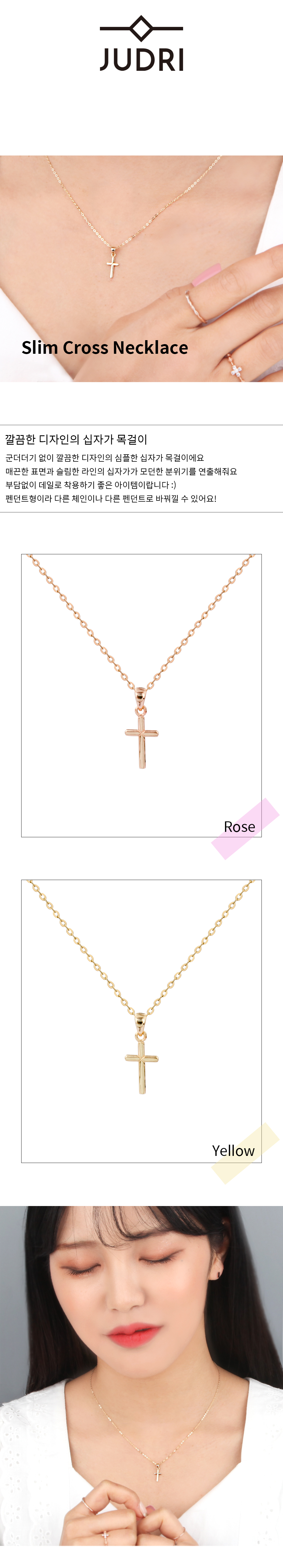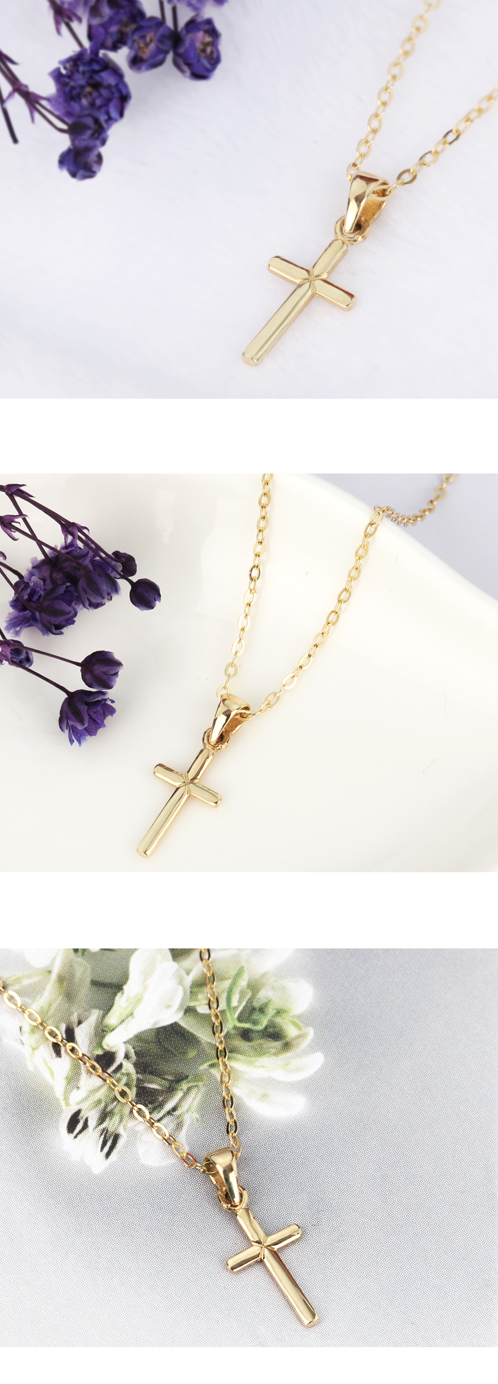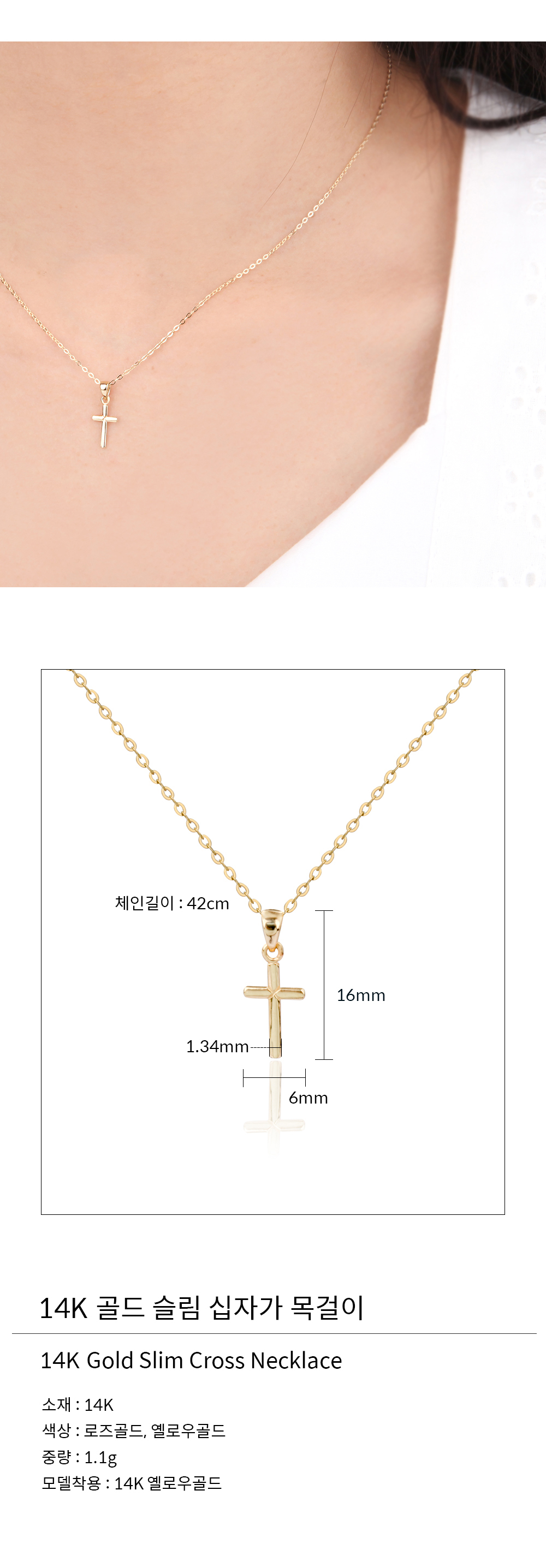 14K 18K 골드 슬림 십자가 목걸이