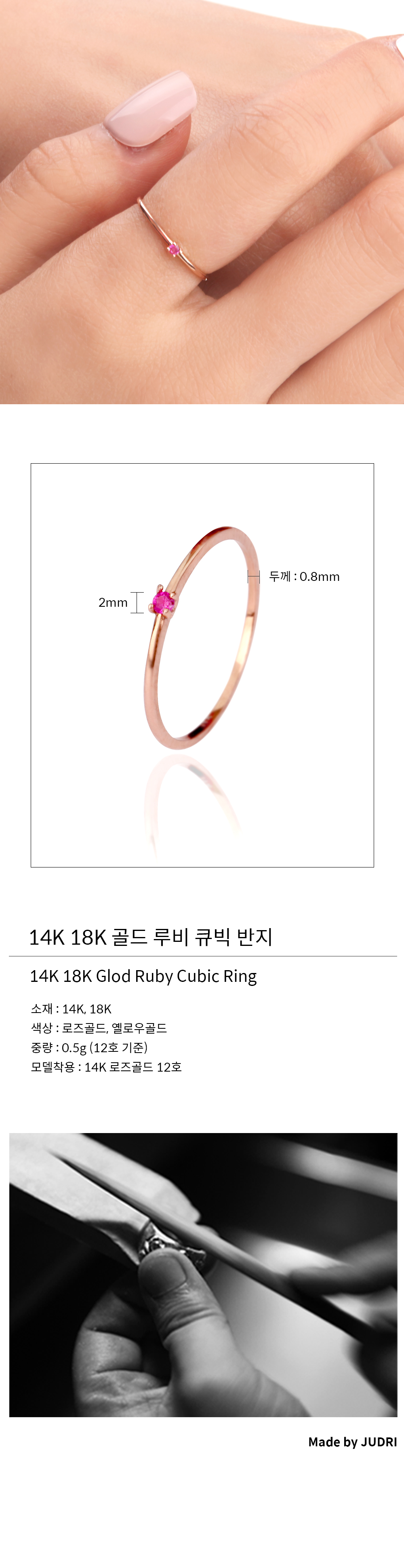 치수 큐빅 : 2mm, 링두께 : 0.8mm