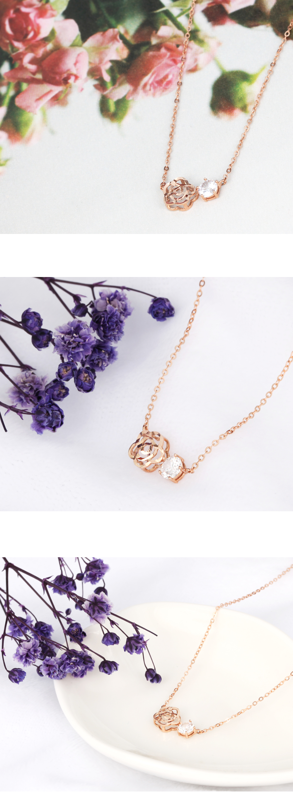 14K 18K 골드 커팅 장미 목걸이
