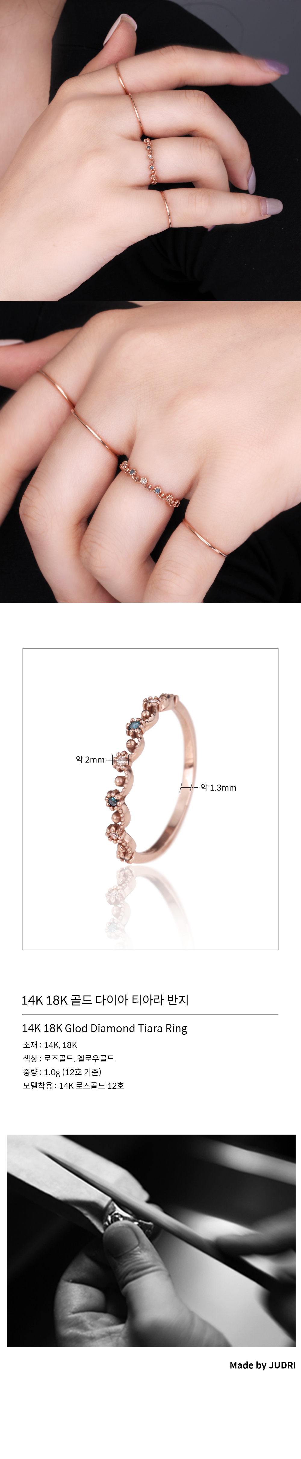 치수 다이아몬드 : 약 2mm, 링두께 : 약 1.3mm