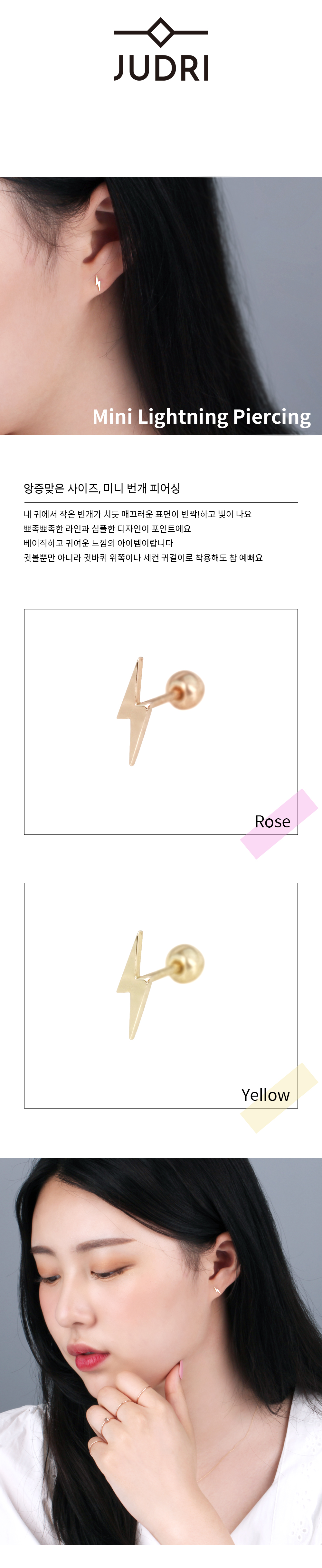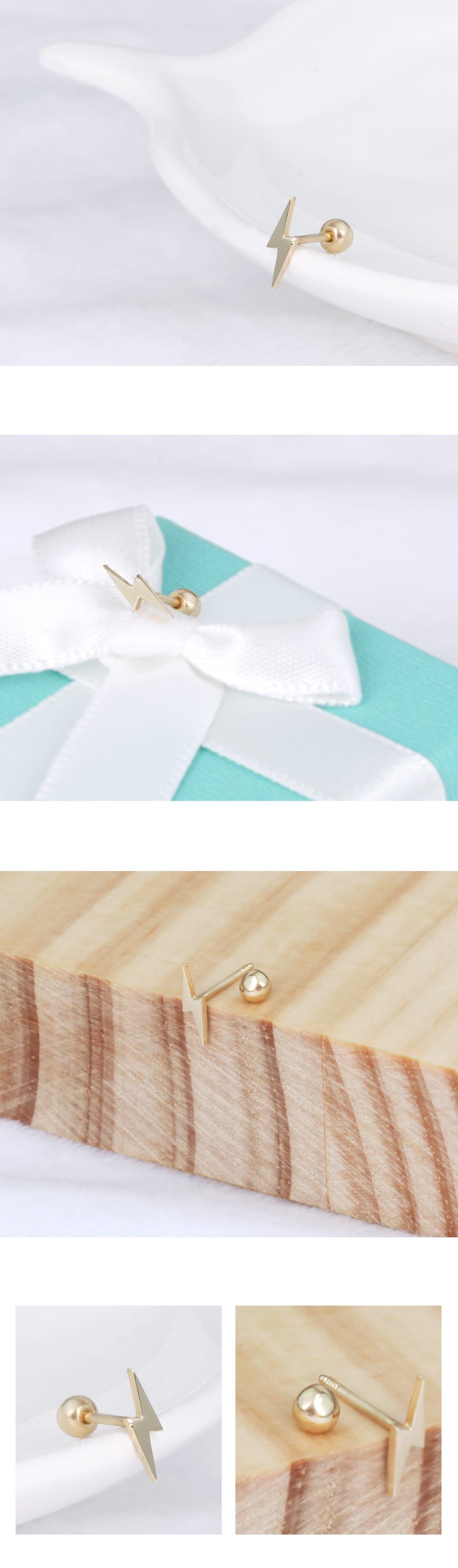 14K 18K 골드 미니 번개 피어싱