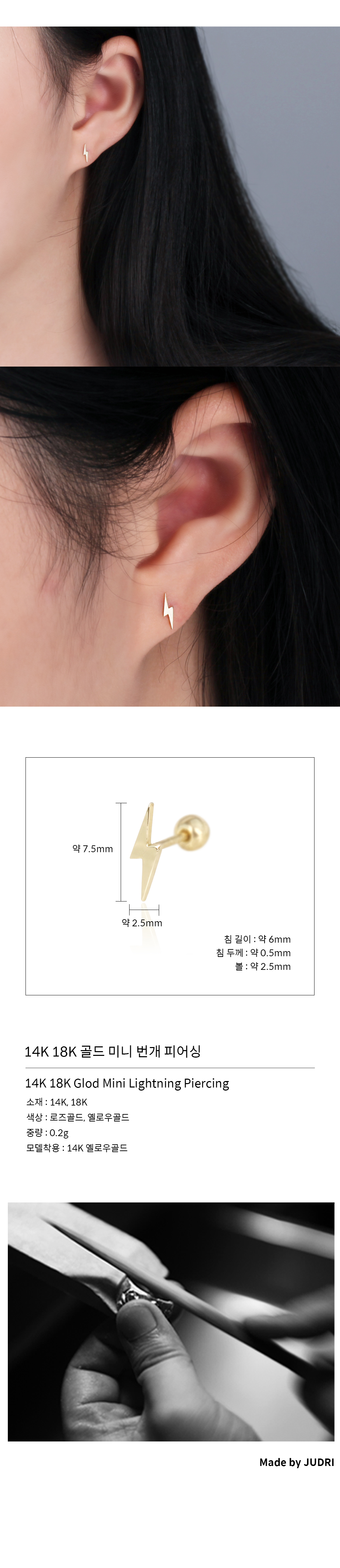 home > 피어싱 > 14K 18K 골드 미니 번개 피어싱