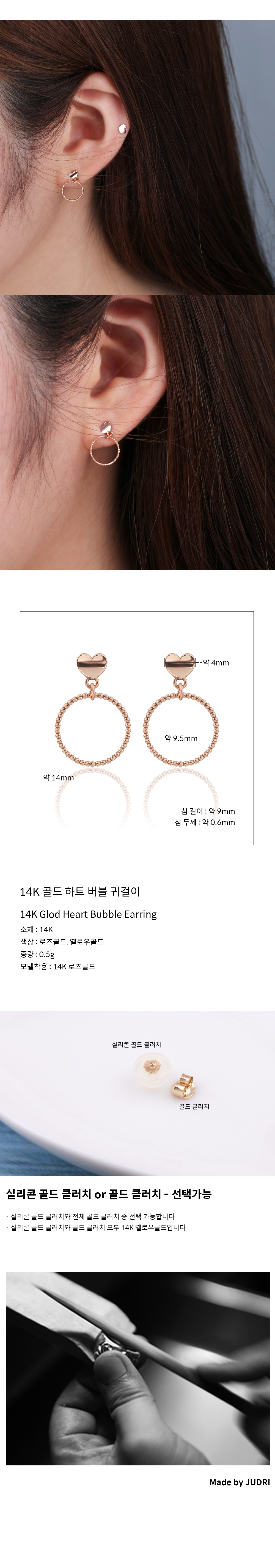 home > 귀걸이 > 14K 골드 하트 버블 귀걸이