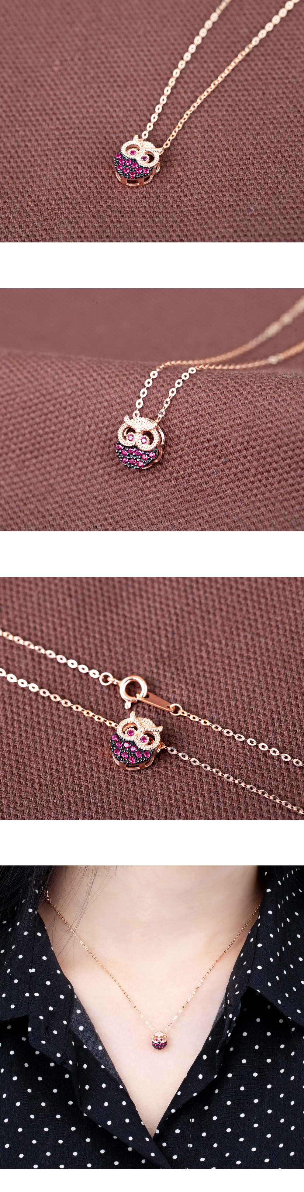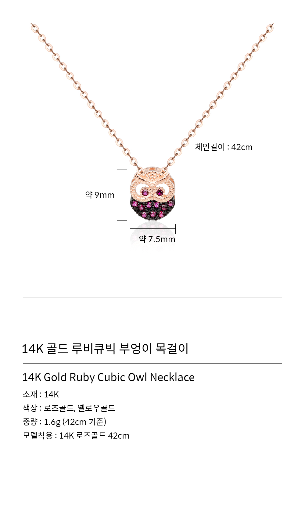 home > 목걸이 > 14K 골드 루비큐빅 부엉이 목걸이
