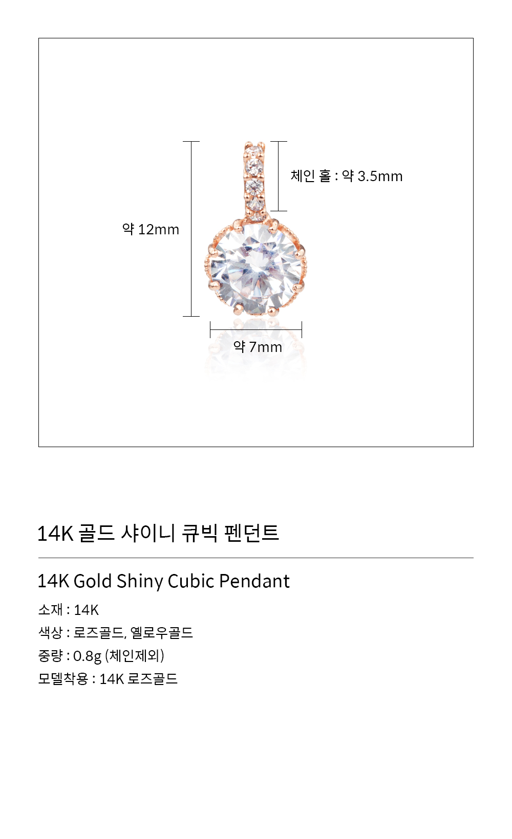 14K 골드 샤이니 큐빅 펜던트