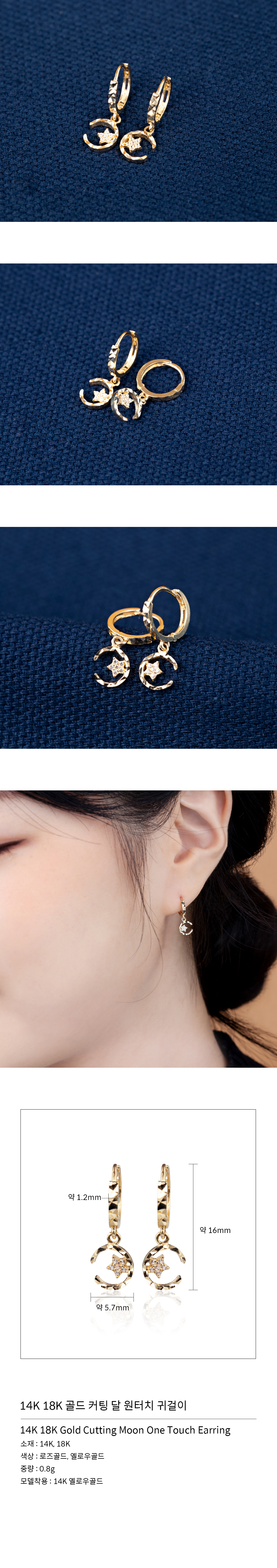 home > 귀걸이 > 14K 18K 골드 커팅 달 원터치 귀걸이