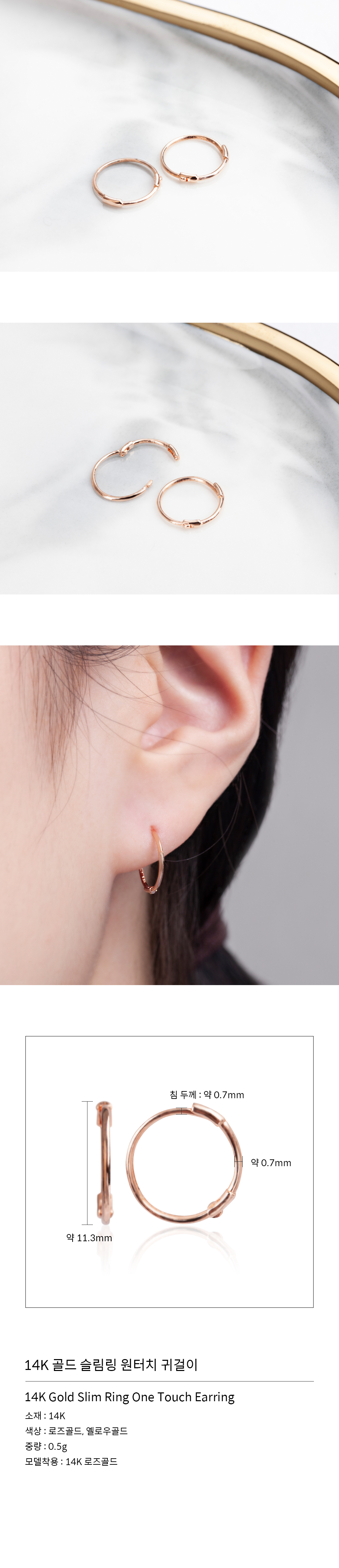 14K 골드 슬림링 원터치 귀걸이